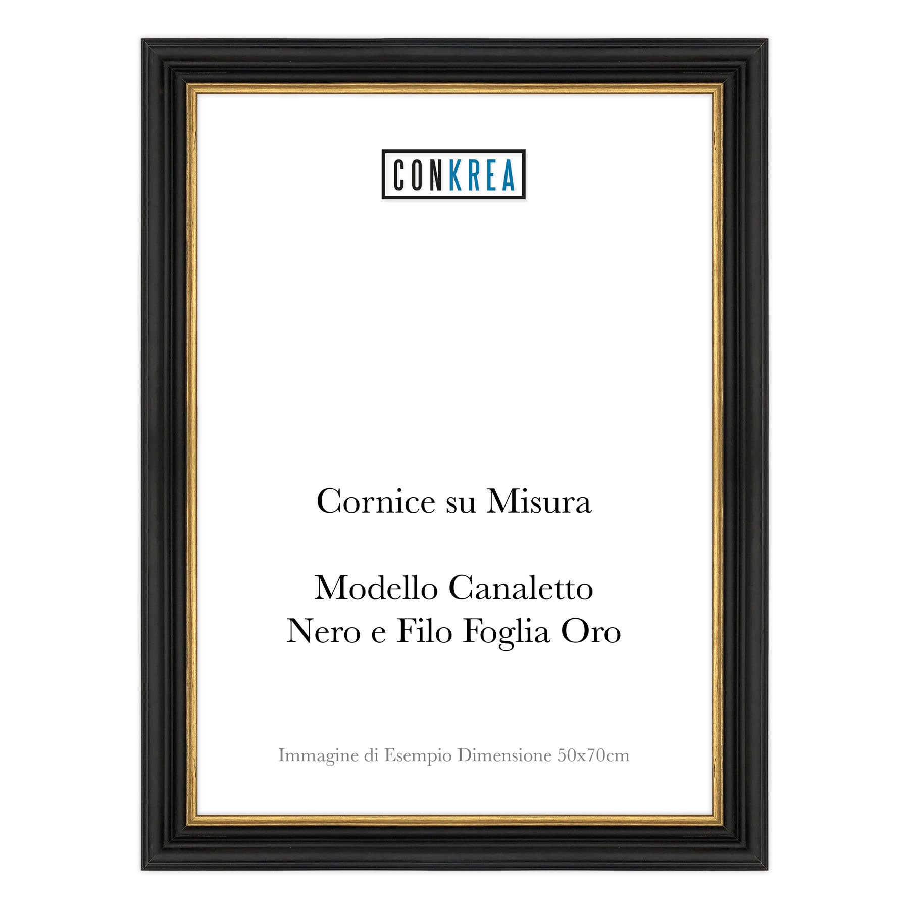 Cornice Classica su Misura - Modello Canaletto Nero e Foglia Oro