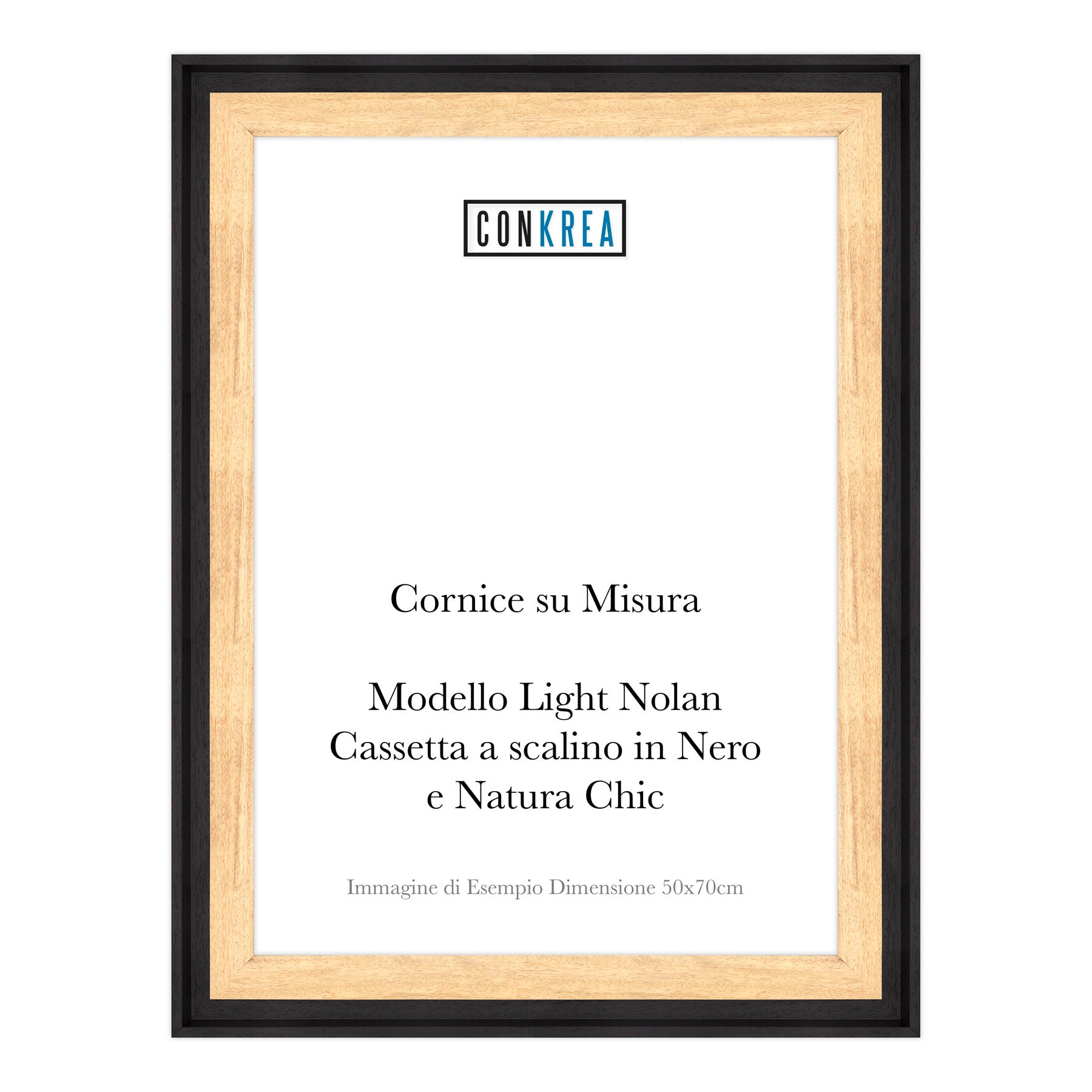 Cornice Moderna su Misura - Modello Light Nolan a Cassetta Scalino Nero e Natural Chic